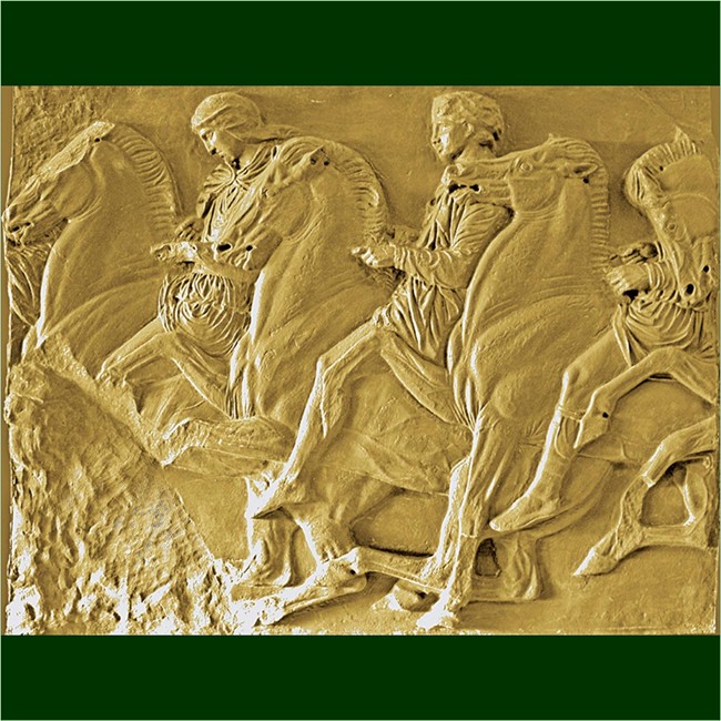 Capturing the majesty of the renowned Parthenon Frieze, the two designs are replicated from original carvings which date from c443-438 BC. The originals depict the Panatheniac Procession. These horsemen are from the north frieze.