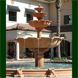 This imposing four-tiered fountain is supported by fluted pedestals featuring stylised Ionic capitals to thje three upper bowls with the top bowl surmounted by a naturalistic bud. This original design is based around the standard Triple Lotus Fountain.