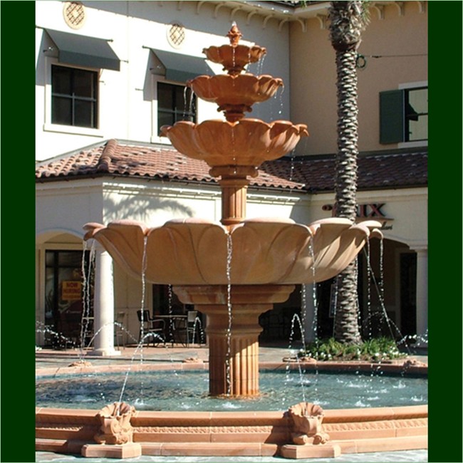 Quadruple Lotus Bowl Fountain Dimensions - Upper shell diameter 800mm (31 1/2") . Second shell diameter 1200mm (47 1/4") . Third shell diameter 1830mm (72") . Botton shell diameter 3660mm (144") . Width of base 850mm (33 1/2") . Overall height 4470mm (176") . Weight 6588kg (14511lb)