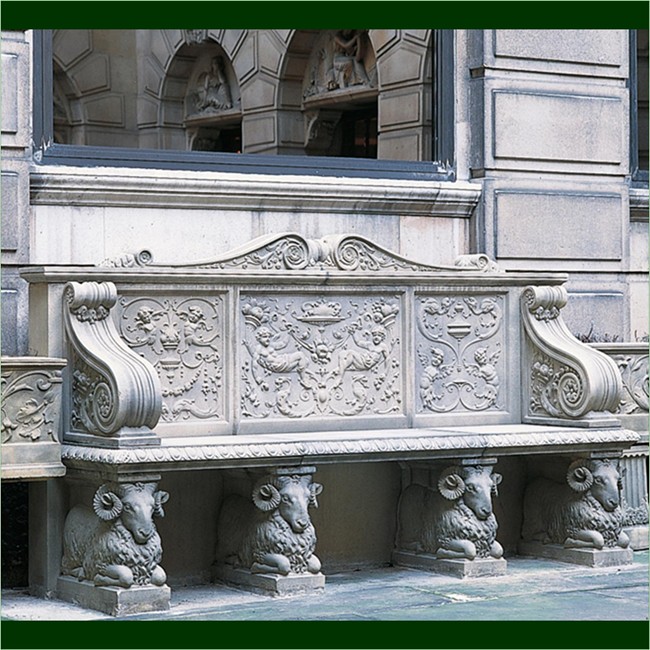 Designed for a livery company in the City of London. Using four rams couchant, this is an interesting variation on the original Raphael Seat.