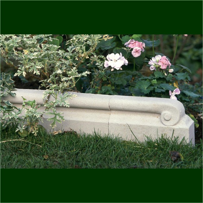 Scrolled Edging Stone Dimensions - Length 457mm (18") . Height above ground 90mm (3 1/2") . Depth below ground 140mm (5 1/2") . Weight 11.5kg (25lb)