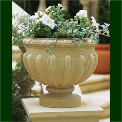The charming vase features gadrooning and fluting to the bowl is enriched around the rim with rods and ribbons in the style of Sheraton. Ideal for interior planting in conservatories and garden rooms.