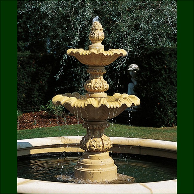 Formed by two ornate shell bowls and pedestals with a naturalistic bud fountain head, this charming double fountain would be ideal as a centrepiece for small pools.
