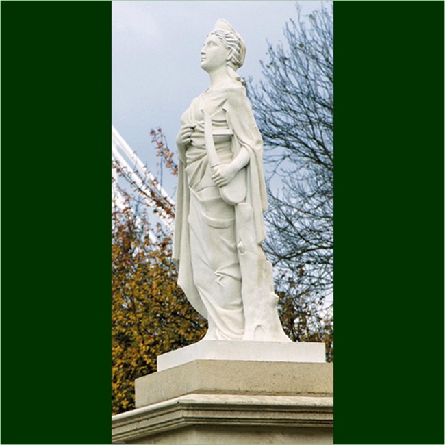 Music holds a classical lyre in her left hand, an instrument attributed to the Greek God Hermes. Originally created for the restoration of Leazes Park in Newcastle, this design is identical in proportion to the statue Poetry.