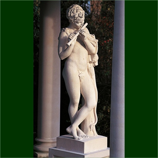 The charming figure of a young boy playing a pipe has been modelled from an antique copy of the original that stood in the Villa Borghese until purchased by Napoleon Bonaparte and subsequently displayed in the Louvre.