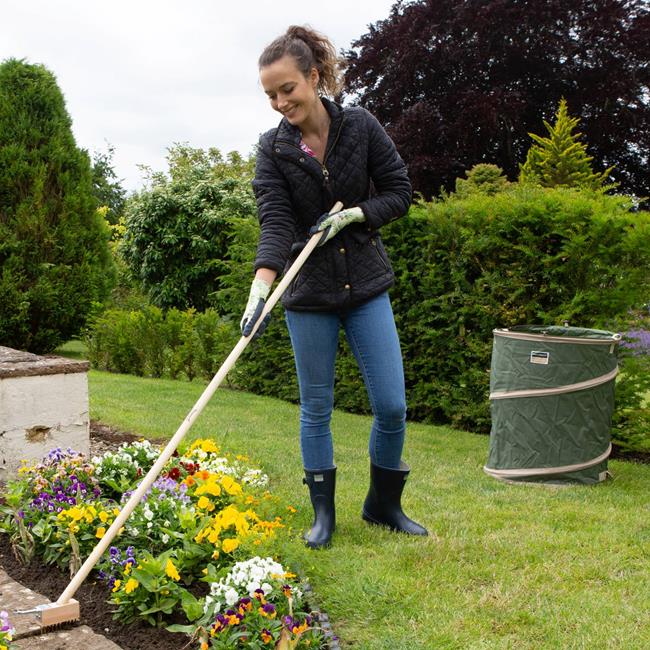 Collect grass cuttings, weeds and other garden waste in this handy, multi-purpose tidy bag. Small size pops up to 44cm with a capacity of 67 litres. Large size pops up to 69cm by 58cm with a capacity of 182 litres. They fold flat for easy storage. Light and easy to carry and made from a strong water-resistant material.