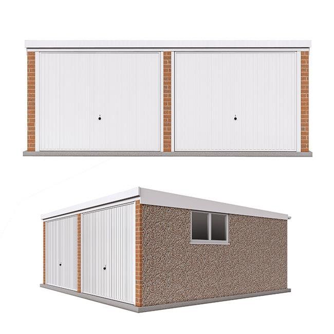 The Ultimate range of garages has been designed to give maintenance free service, with superb white powder coated up and over doors(s), 4ft wide double glazed fixed PVCu window, white headboard, side fascia boards, guttering and down pipe all in the finest quality, maintenance free PVCu. The front aspect is finished with genuine brick (Red Wire cut) pillars either side of the front up and over door. A steel personal door is also included. All Pent roof garages have corrugated ultra-steel sheets with a new anti-condensation, no noise coated steel roof sheet on purpose made welded steel trusses. All Apex roof garages have corrugated cement fibre roofing sheets. The roof pitch of all the Ultimate Apex garages is 12.5 degrees, to accommodate the attractive ridge tiles, this is a lower pitch than the standard range of garages & gives a less pointed appearance. The walls are concrete panels, machine vibrated and re-enforced with steel mats to give maximum strength. The exterior finish is hard wearing and maintenance free Canterbury Spa Stone. All panel joints are sealed with natural colour mastic.