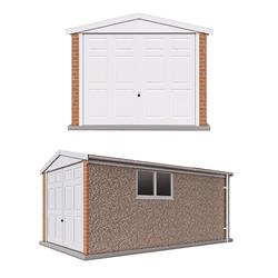 The Ultimate range of garages has been designed to give maintenance free service, with superb white powder coated up and over doors(s), 4ft wide double glazed fixed PVCu window, white headboard, side fascia boards, guttering and down pipe all in the finest quality, maintenance free PVCu. The front aspect is finished with genuine brick (Red Wire cut) pillars either side of the front up and over door. A steel personal door is also included. All Pent roof garages have corrugated ultra-steel sheets with a new anti-condensation, no noise coated steel roof sheet on purpose made welded steel trusses. All Apex roof garages have corrugated cement fibre roofing sheets. The roof pitch of all the Ultimate Apex garages is 12.5 degrees, to accommodate the attractive ridge tiles, this is a lower pitch than the standard range of garages & gives a less pointed appearance. The walls are concrete panels, machine vibrated and re-enforced with steel mats to give maximum strength. The exterior finish is hard wearing and maintenance free Canterbury Spa Stone. All panel joints are sealed with natural colour mastic.