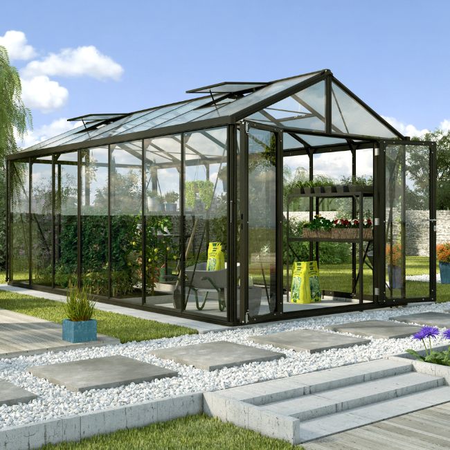 8' x 18' Vitavia Zeus 13800 - Aluminium Greenhouse - Black Powder Coated