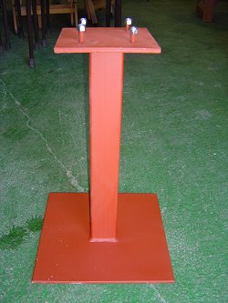 Heavy duty underground socket with protruding bolts for parasol fixing.