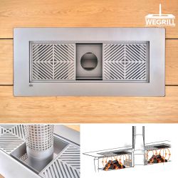 Not your average grill, A grill design, in high-grade stainless steel, with an internal airflow that allows it to safely sit within the table.