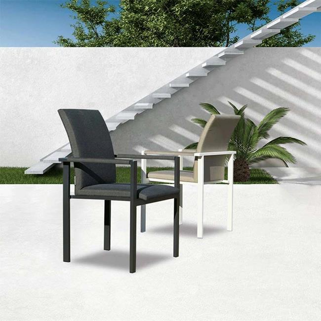 Combining Sunbrella™ fabric & quick dry foam this modern chair with its clean lines is a practical stylish option for any outdoor setting and they can also be stacked for compact storage if required. Completely weather and waterproof, backed by our 5-year guarantee, Edge chairs can be left outside all year round without the need to cover. Just imagine, no more cushions to find storage for!! Also included are optional Sunbrella™ padded arm sleeves for extra comfort and a more refined aesthetic.