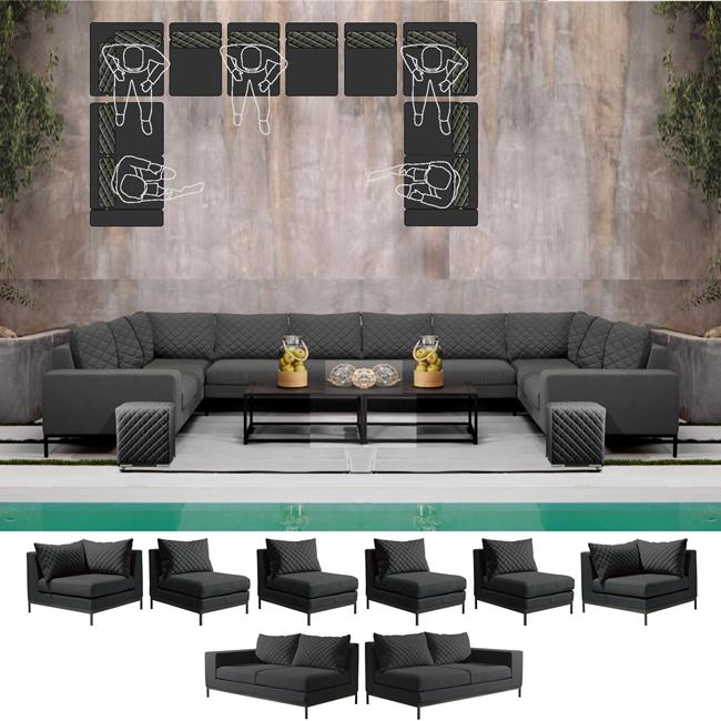 Constructed using fully welded Powder Coated Aluminium with year round weather proof Sunbrella fabric. Slightly more trendy looking to other products in the fabric lounge collection, the Arctic will grace any outdoor space, setting the standard by using the finest fabrics and foam for outdoor use. Specially designed built in hidden clips are supplied fpr connecting modular pieces together.