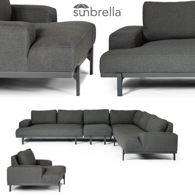 ![]() 6 Seater Corner Sofa + Lounge Chair Set Sunbrella Leave-Out Fabric Slate Natte' Charcoal Frame Availability: IN STOCK Product Code: CHILL17 |