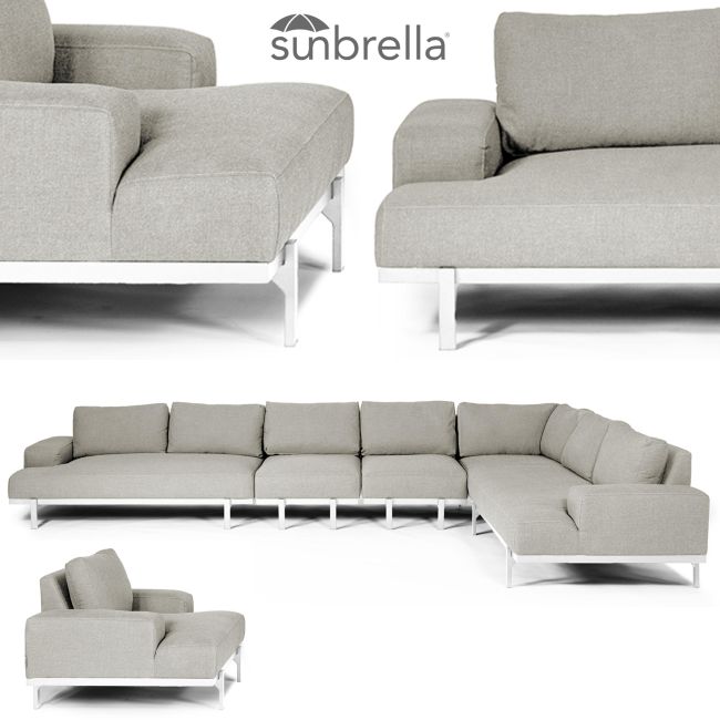 ![]() 7 Seater Corner Sofa + Lounge Chair Set Sunbrella Leave-Out Fabric Stone Natte' White Frame Availability: IN STOCK Product Code: CHILL20 |
