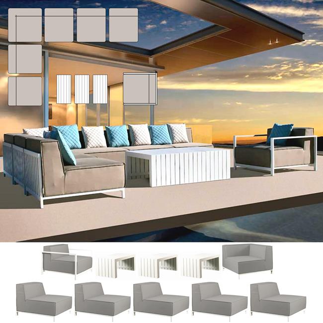 ![]() Seats 7-8 Amazing Leave Outside Sunbrella Fabric Set includes 1 Corner Unit 5 Middle Units 1 Lounge Armchair 3 Design Coffee Tables Availability: IN STOCK Product Code: GRANSAHSET07 |