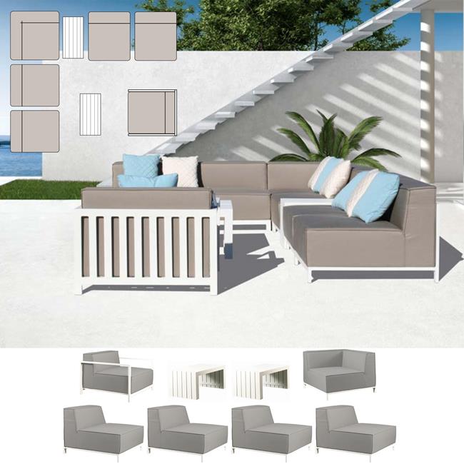 ![]() Seats 6-7 Amazing Leave Outside Sunbrella Fabric Set includes 1 Corner Unit 4 Middle Units 1 Lounge Armchair 2 Design Coffee Tables Availability: IN STOCK Product Code: GRANSAHSET02 |