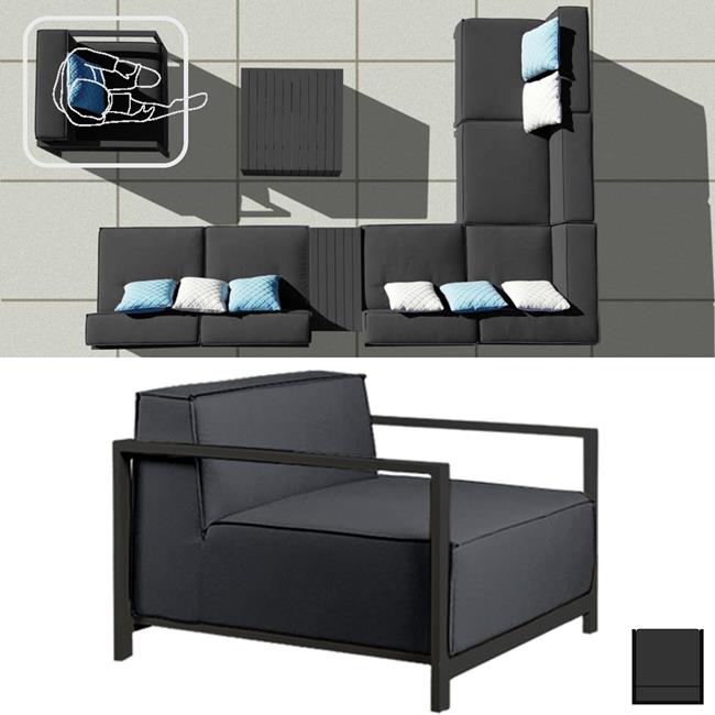 ![]() Modular Armchair Unit Slate Natte' Sunbrella Fabric Charcoal Frame Availability: IN STOCK Product Code: GSACSC |