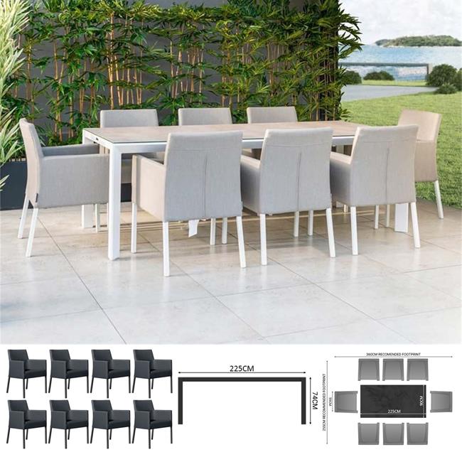 ![]() Seats 8 Amazing Leave Outside Sunbrella Fabric Set includes 8 Mirage Armchairs 1 Pacific 225cm Rectangular Ceramic Top Dining Table Availability: IN STOCK Product Code: PACMIRAGESET8 |