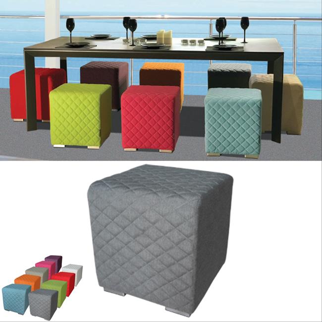 Constructed using fully welded Powder Coated Aluminium and year round weather proof Sunbrella fabric. Perfect for use as a foot rest or as an extra seat.