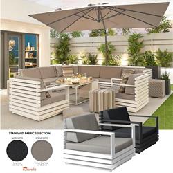 The Tomorrow Deep Seating range is an apt name for this design due to it’s super, ultra modern look and is our flag ship deep seating range in the aluminium sector. The Tomorrow lounge set will complement any outdoor space. The clean, simple and solid designed frame is finished in charcoal or white aluminium. Constructed using fully welded powder coated aluminium along with all year round weather proof sunbrella fabric and quick dry foam. Design your own unique set using the specially designed built in hidden clips that are supplied for connecting the modular pieces together.