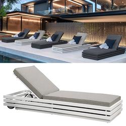 ![]() Wheeled Sun Lounger Stone Sunbrella Fabric White Aluminium Frame Availability: IN STOCK Product Code: TOMOLOUN001 |