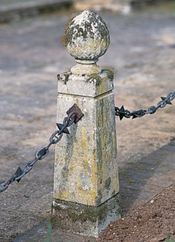 The bollard surmounted by a fircone finial may be used with or without connecting chains (not supplied).
