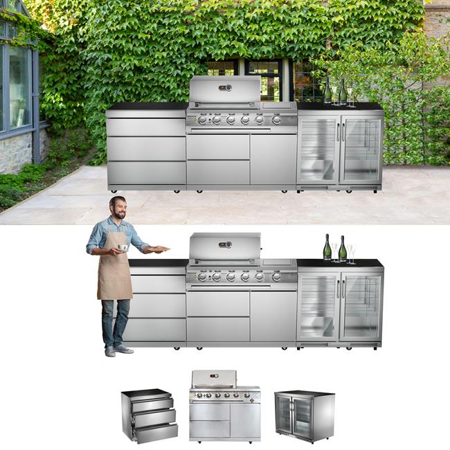 ![]() Birstall 3pc Modular Gas BBQ 1 No. 4 Burner BBQ 1 No. Fridge Unit 1 No. Cabinet (With 3 Drawers) Inc. Laminam Ceramic Worktops Product Code: WHISBIR4 |
