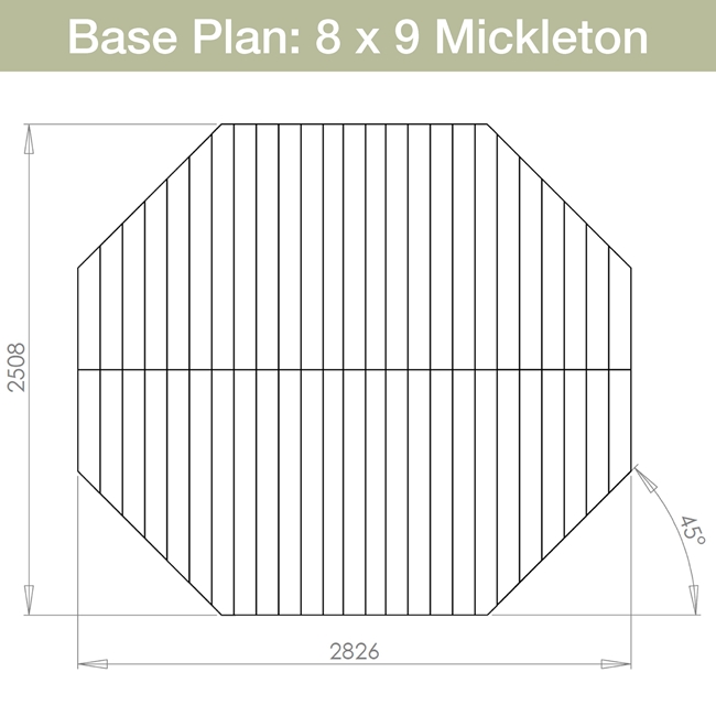 Actual Floor Size: 9ft 3" x 8ft 2" (2826 x 2508mm) Elongated Octagonal