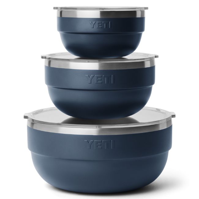 Three sizes of double-wall insulated bowls keep queso piping hot, salads cool and crisp no matter where you feast. Designed to save space, Rambler Insulated Bowls and lids nest together for organised storage in cupboards and camp kitchen.