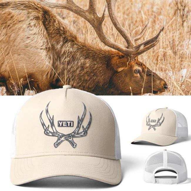 YETI Antler Badge Trucker Hat - LIGHT KHAKI