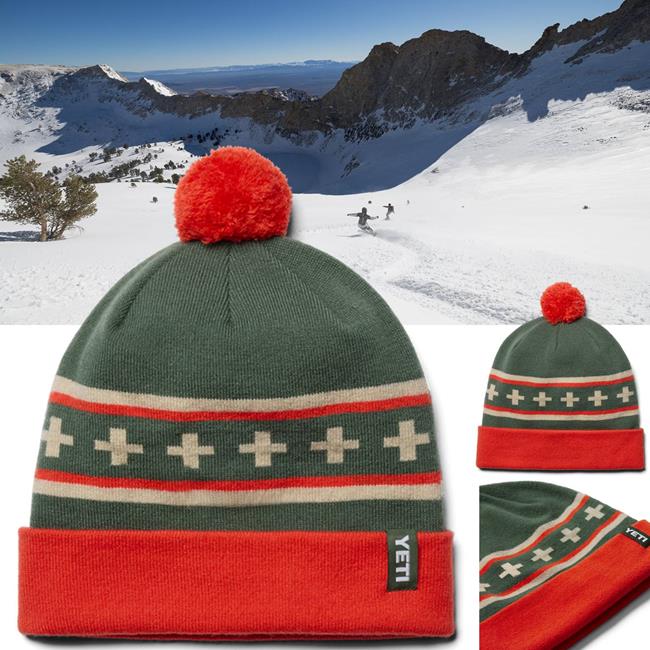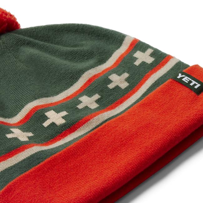 YETI Logo Badge Pom Beanie Hat - GREEN / ORANGE