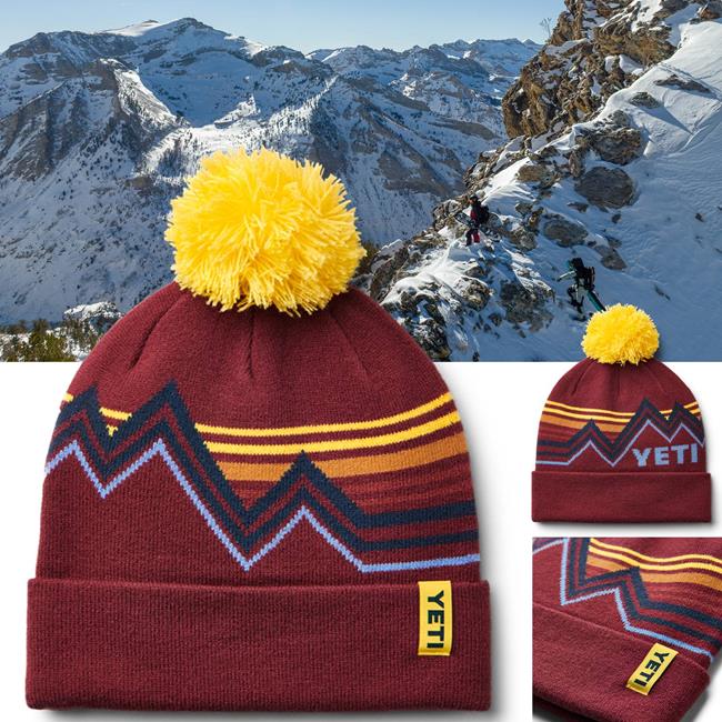 YETI Logo Badge Pom Beanie Hat - RUST / YELLOW