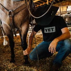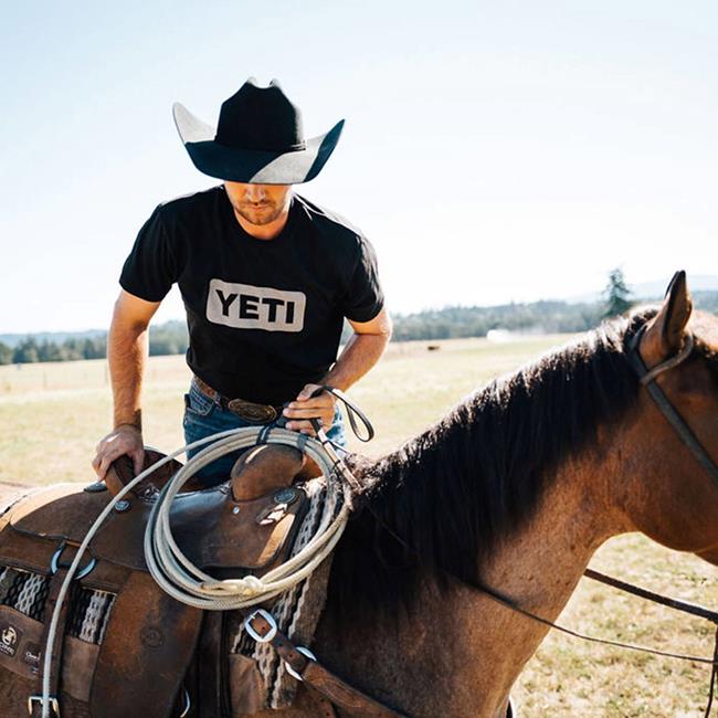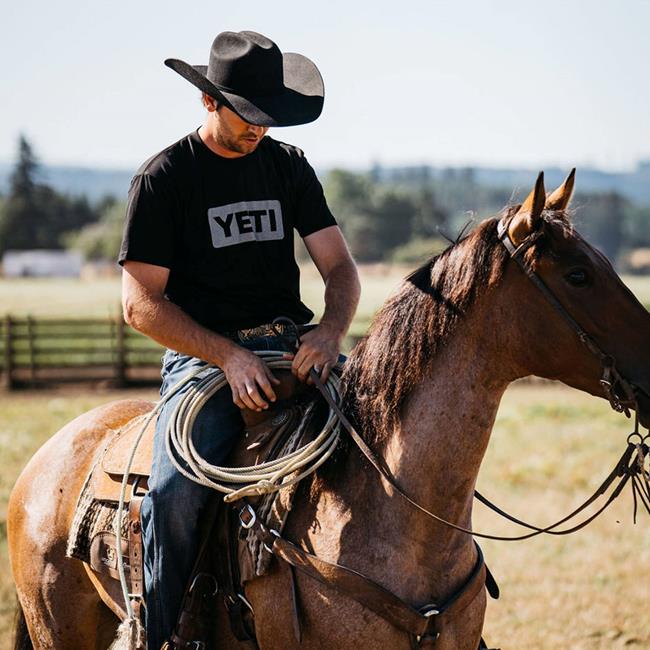 YETI Logo Badge Premium T-Shirt - BLACK / GREY