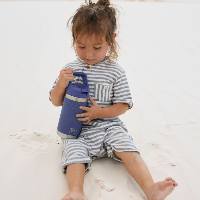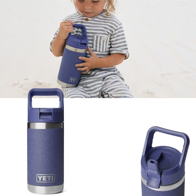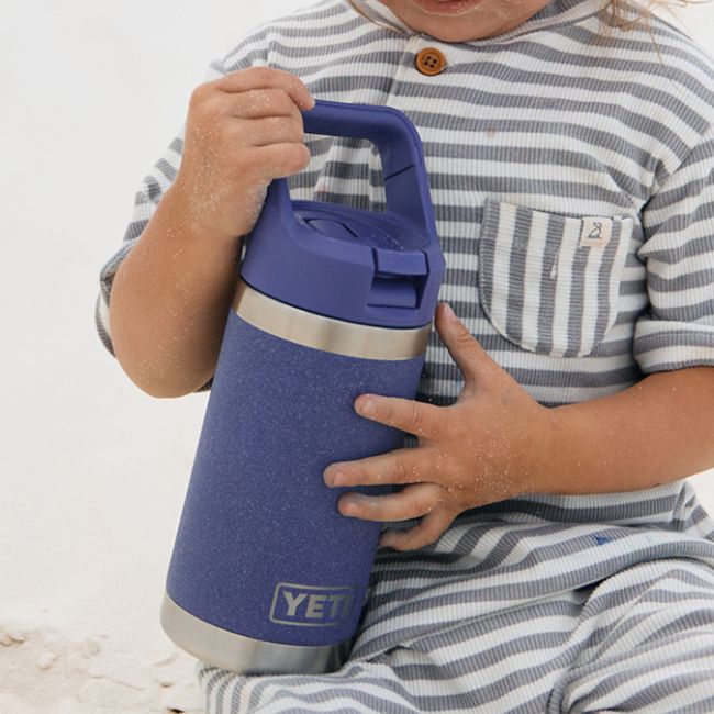 Rambler Jr. is a small-and-mighty kids' bottle over-engineered for your little wild ones. This 12oz powerhouse inherited double-wall vacuum insulation from its Rambler Drinkware predecessors, carrying on the family legacy by locking in ice-cold water for backyard campouts and breaks between tag. YETI made sure its included straw cap is leak-resistant when closed and both the bottle and camp are dishwasher safe. Plus it's engineered with a super strong, stainless steel aromour that can handle taking a tumbler.