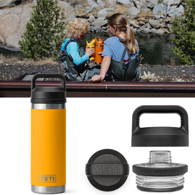 The Rambler 18oz Bottle (532ml) is a necessary addition to your morning hikes, kayak trips and daily commutes. This tough bottle is double-wall vacuum insulated to keep your water cold until the last sip, dishwasher safe for easy cleaning and comes standard with the Chug Cap. With a quick twist, the TripleHaul handle comes off, exposing the shatter-resistant, dishwasher safe spout that allows for controlled gulps on the go. When it’s time for a wash or refill, remove the entire cap to expose the bottle’s wide mouth.