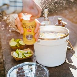 This durable beverage bucket is part of the treid-and-true Rambler Family. It's big enough (and strong enough) to haul a siz pack or three bottles of wine, and is over-engineered to keep beverages cold long in the the night. With the lid in place it also makes a great ice bucket for those who prefer their campfires cocktails on the rocks.