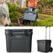 The Roadie 32 Wheeled Hard Cooler is maneuverable, durable and small-vehicle friendly, making it ready to navigate tailgate crowds, long road trips and weekends away. This wheeled cooler has the same cold-holding power and durability you'd expect from a Tundra Cooler with the added mobility. It's also going to last just as long thanks to its RockSolid Strength body construction - from the durable handle to its rugged wheels, this thing is virtually indestructible. This Roadie 32 Wheeled Cooler comes with one dry goods basket.