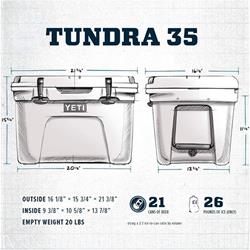 The YETI Tundra 35 is the right size for personal hauls or food for a small crew. It boasts up to three inches of PermaFrost Insulation and a rugged rotomolded construction for optimum adventure performance. And it fits nicely in an inner tube, making it the perfect, portable cooler to take tubing down the river. Note: This Tundra cooler comes with one internal dry goods basket.