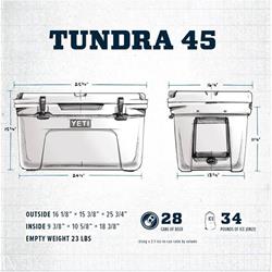 The YETI Tundra 45 combines versatility with durability. This premium cooler is infused with that legendary YETI toughness - a durable rotomolded construction and up to two inches of PermaFrost Insulation. Which is to say it's built to last and will keep your contents ice-cold even in sweltering conditions, like a triple-digit summer day in central Texas. No bowing, cracking, or melting here. Note: This Tundra cooler comes with one internal dry goods basket.