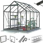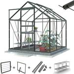 Affordable prices, as well as the frame's exceptional strength and quality, which includes its special twin box section corner bars. This model's design has taken every factor into account, literally from the ground up, and it comes with a sturdy 4 inch galvanised foundation so you can set up your greenhouse almost anywhere. The addition of 3mm toughened safety glass, which is included throughout and is retained by robust full-length PVC bar capping that is much stronger than any normal glazing clips, significantly increases the strength of the building..