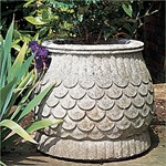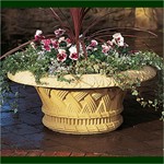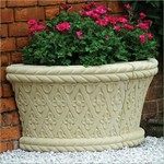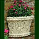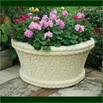 An interwoven strapwork design with rope decoration around the rim and foot. This jardiniere is designed for placing on walls and piers as well as at ground level....  More