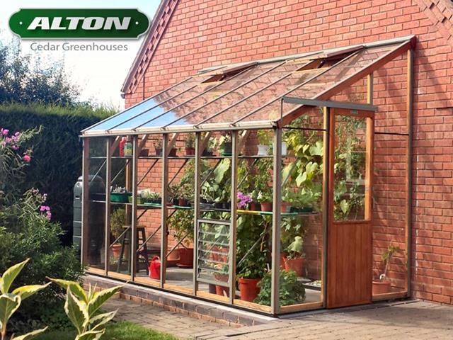 Alton lean to greenhouses are ideal if you have a limited space and a convenient wall to offer the greenhouse to. Available in a selection of widths, lengths and ridge heights, Alton Lean To Greenhouses can have the door manufactured on either end (or both) and can be extended to create virtually any size.