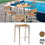 Stainless Steel & Teak High Dining Stool