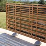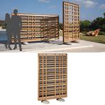 Barlow Tyrie Woodland Teak screens create privacy and shade in a choice of Portrait & Landscape aspects. Freestanding panels sit in 'Pebble-like' feet and incorporate LED lighting & textilene integral screens