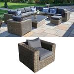 The Bridgman MAYFAIR COLLECTION combines exceptional comfort and style at attractive prices. With a weather-resistant construction produced from synthetic rattan and powder-coated aluminium, the maintenance-free Mayfair Collection can remain outdoors all year round. Furniture from the Mayfair Collection is designed to stand in a natural setting with expertly woven, 5mm full round rattan presented in a beautifully blended brown and olive-green tone.