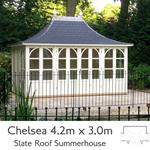 With a state of the art factory housing the latest CNC (Computer Numerically Controlled) woodworking machinery we produce a large range of garden buildings to the highest standards in the industry. The core range of freestanding rectangular buildings are made from tried and tested designs. With the Chelsea range being adaptable to suit many design briefs. All our buildings are double glazed, and can be professionally insulated within the floors, walls and roofs. The in-house spray and finishing department can paint the building literally any colour you wish. Please call 0116 267 7091 to speak with one of our Chelsea Summerhouse experts.
