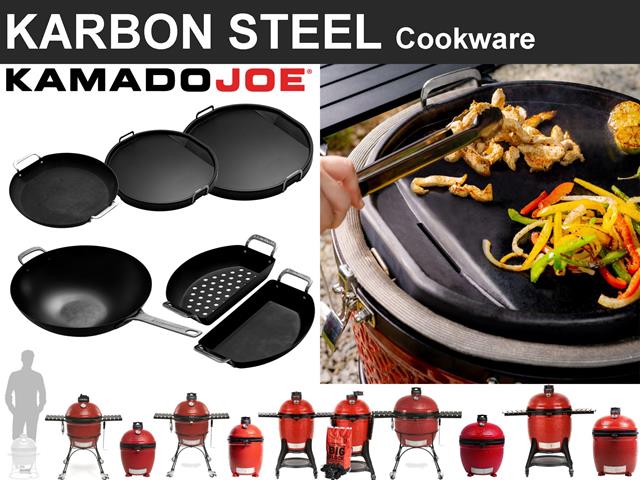 Expand the versatility of your Kamado Joe with the Karbon Steel™ collection. With a range of full diameter griddles in 2 sizes, Half Moon Pans, a handled Wok and Paella Pan. Karbon Steel is non-stick & pre-seasoned - add Karbon Steel cookware to your Kamado Joe arsenal for an elevated charcoal cooking experience.