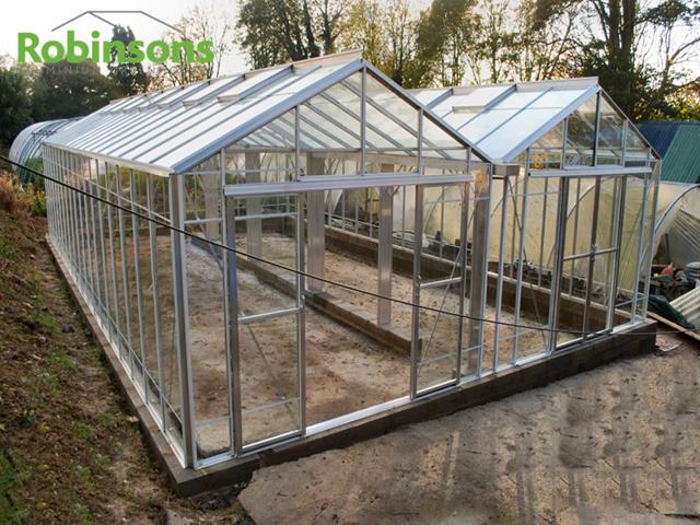 Robinsons Rosette Reach (Double Span + Extra Height) greenhouses offer superb build quality, for domestic gardeners to professional nurserymen. Taller than a standard Rosette at 6ft 6" to the eaves, constructed from heavy gauge box section aluminium in a choice of powder coated finishes.