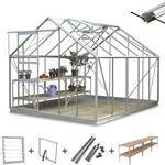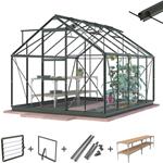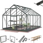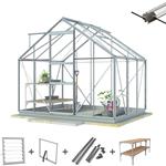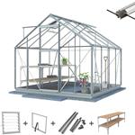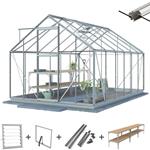 Affordable prices, as well as the frame's exceptional strength and quality, which includes its special twin box section corner bars. This model's design has taken every factor into account, literally from the ground up, and it comes with a sturdy 4 inch galvanised foundation so you can set up your greenhouse almost anywhere. The addition of 3mm toughened safety glass, which is included throughout and is retained by robust full-length PVC bar capping that is much stronger than any normal glazing clips, significantly increases the strength of the building..